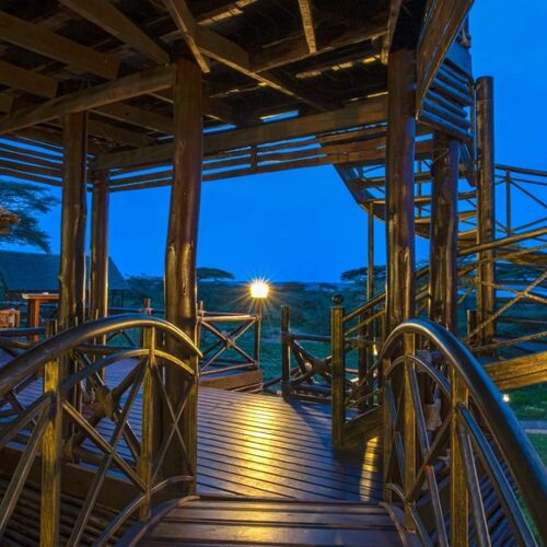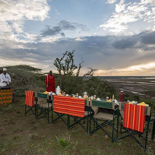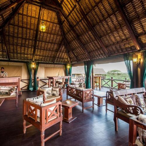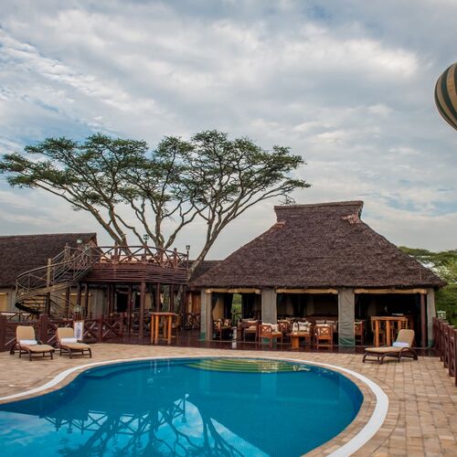 Mellan de offentliga områdena finns en souvenirbutik och en utsiktsplattform med förstoringsutrustning. Receptionen med ett väntrum och två toaletter är separat från loungen och matsalen. Det finns en pool som ger den mycket behövda lyxen att kunna svalka av sig efter en tidig morgonvandring eller innan en sen eftermiddags game drive. Från poolen har man en fantastisk utsikt över Ndutu-sjön och busken runt - en underbar fusion av lyx och bush-upplevelse.