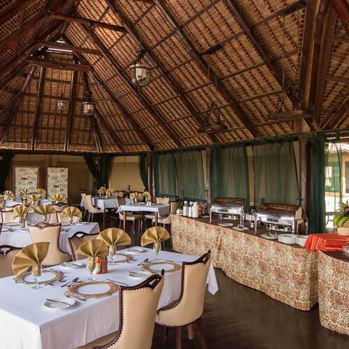 Både matsalen och loungen står på upphöjda plattformar med trägolv och makuti-tak och har en stor utomhusterrass. Kocken kommer glädjande överraska med ett brett utbud av nylagad mat, inklusive lokala och internationella rätter.