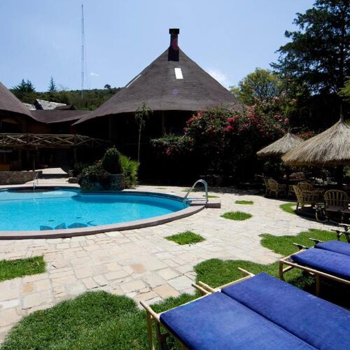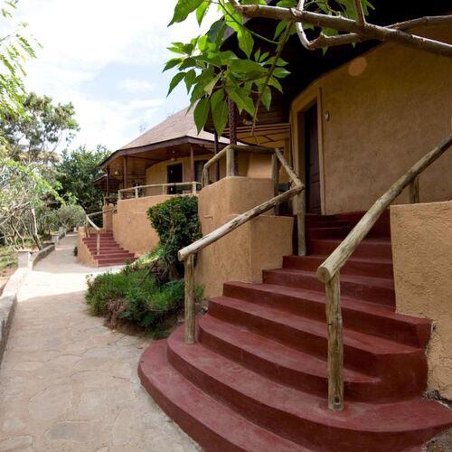 Masai Mara Sopa Lodge i Kenya har en höjd på 1900 meter på sluttningarna av Oloolaimutia Hills och en unik utsikt över Oloolaimutia Valley och de östra sträckorna av Masai Mara-reservatets stora vidder.
