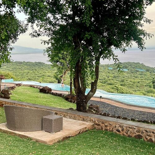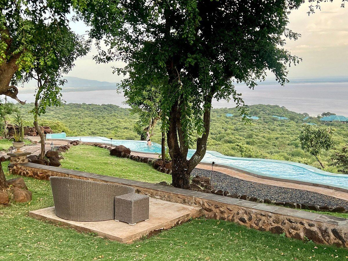 Udsigt: Mange værelser har store vinduer eller private terrasser, der giver fantastisk udsigt over Lake Manyara og det omkringliggende landskab.