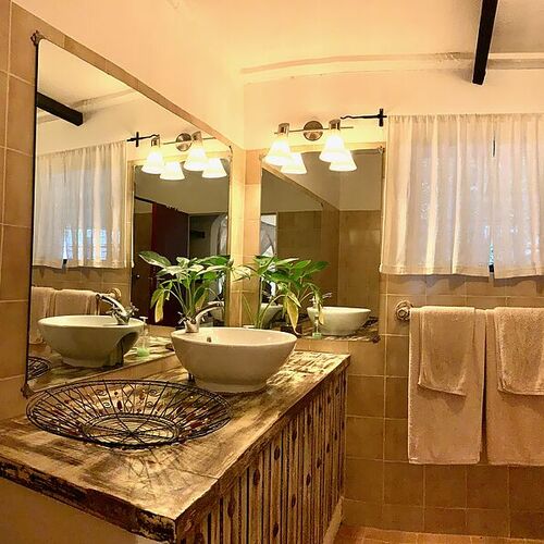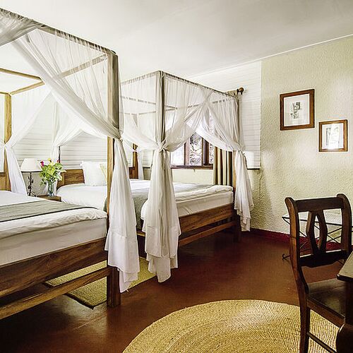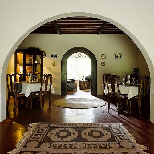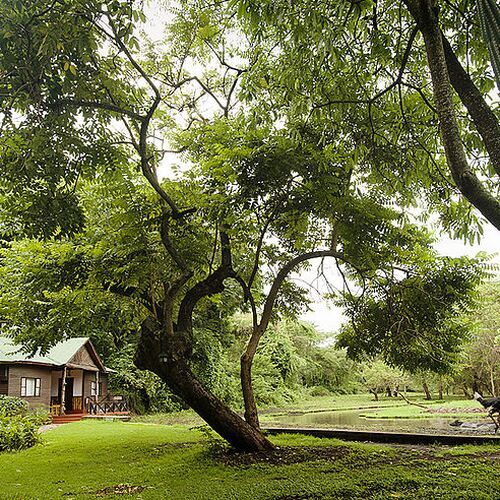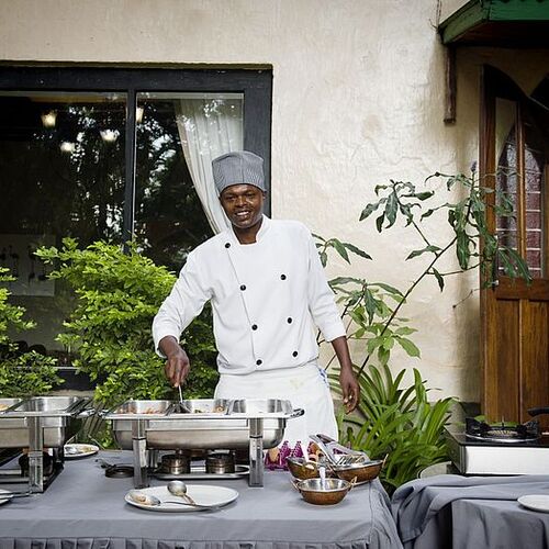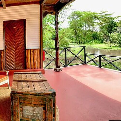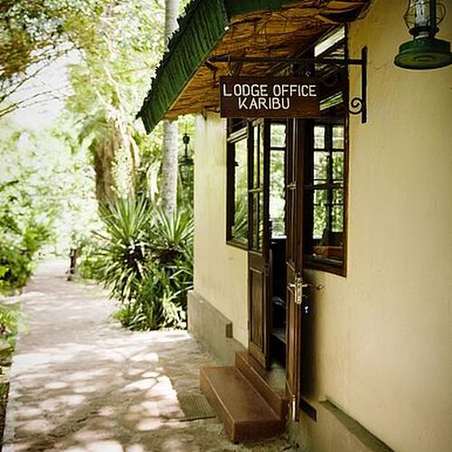 Lodgens huvudbyggnad består av en reception, lounge och bar. Loungen med sina enorma panoramafönster och bekväma möbler skapar en avslappnad atmosfär. Baren har ett brett utbud av spritdrycker, öl och mineralvatten, kompletterat med noggrant utvalda viner. Framför huvudbyggnaden finns en terrass i skuggan av enorma gamla mangoträd, som erbjuder en magnifik utsikt över välskötta trädgårdar utanför. På lodgens område finns en utomhusmatplats och en pool där man kan njuta av solens strålar. Trädgården med lägereld ger möjlighet att äta under den afrikanska stjärnbelysta himlen medan man lyssnar på de exotiska ljuden på natten.