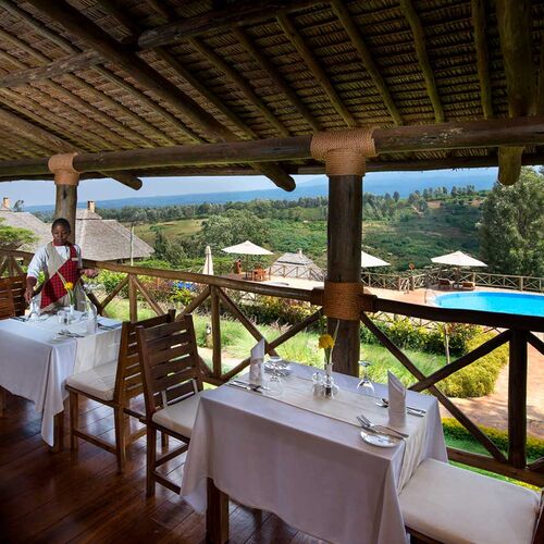 Hovedrestaurant: Lodgen har en hovedrestaurant, hvor gæsterne kan nyde en bred vifte af retter. Morgenmaden, frokosten og middagen serveres som buffet eller a la carte, afhængig af gæsternes præference. Restauranten tilbyder en afslappet atmosfære med smuk udsigt over de omkringliggende skove og Ngorongoro-krateret.