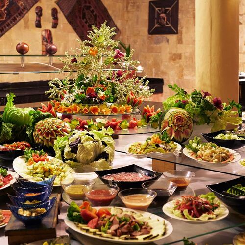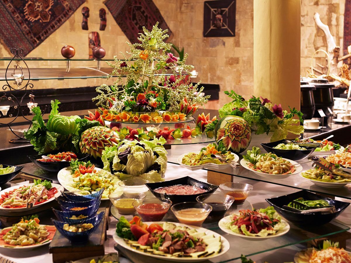 Hovedrestaurant serverer internationale og lokale retter. Der serveres morgenbuffet fra 7:00 til 9:30, frokost serveres fra 12:00 til 15:00 og aftensmad serveres fra 19:00 til 22:00 med forskellige temaer og køkkener. I spisetiden serveres der sodavand, frugtjuice, vand, husets vin, lokal øl, te og kaffe.