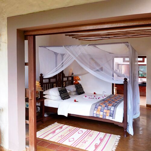 Dette værelse i afrikansk stil er på ca. 34 m² med en kingsize seng. Aircondition og myggenet. Stort badeværelse med walk-in regnbruser, hårtørrer og wc. Satellit-tv, minikøleskab, mini pengeskab og kaffe/temaskine. Stor terrasse med dagseng. Gratis Wi-Fi. Værelserne er i typiske makuti-overdækkede hytter.