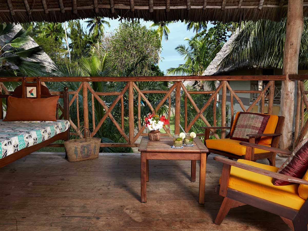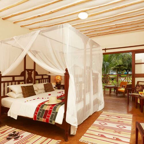 Igen i afrikansk stil på ca. 34 m² med en kingsize seng. Aircondition og myggenet. Stort badeværelse med walk-in regnbruser, hårtørrer og wc. Satellit-tv, minikøleskab, mini pengeskab og kaffe/temaskine. Stor terrasse med dagseng. Gratis Wi-Fi. Disse værelser er tættest på hotellets pool og havet.