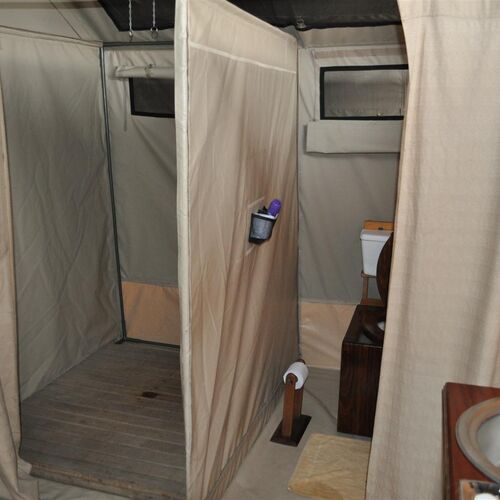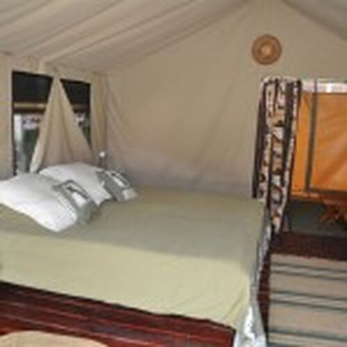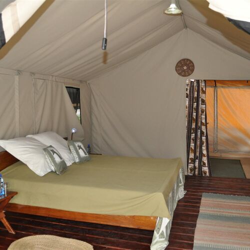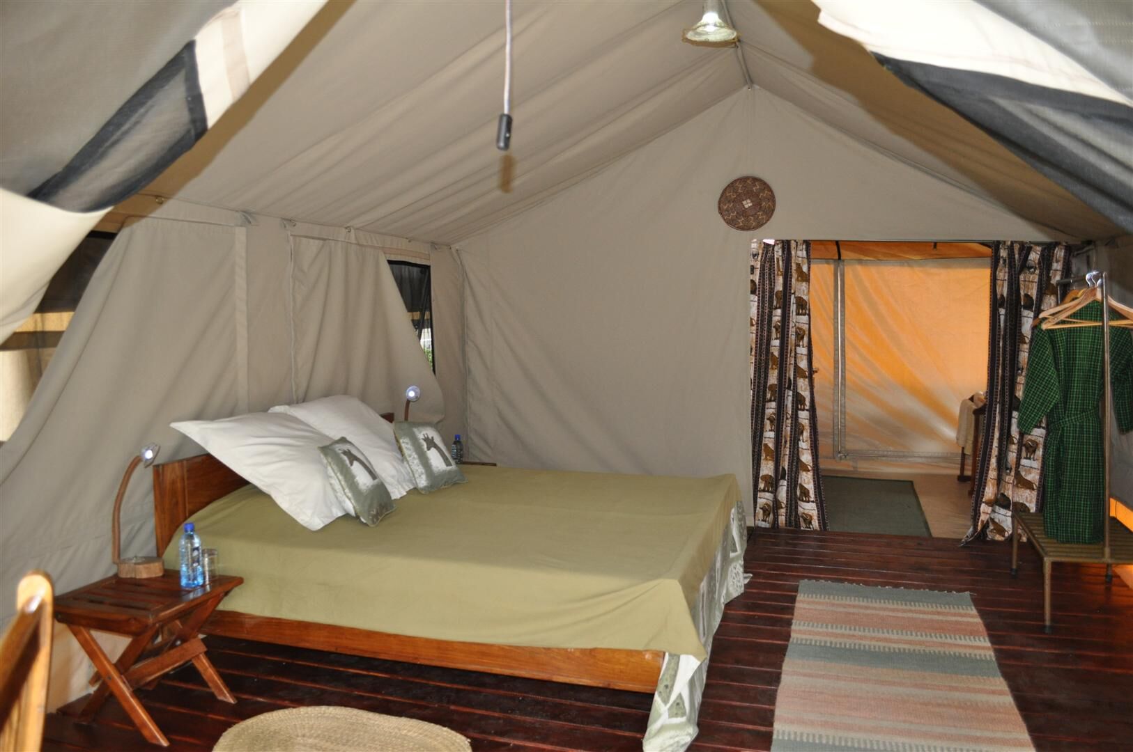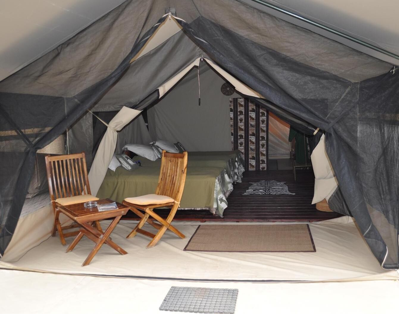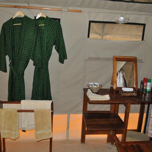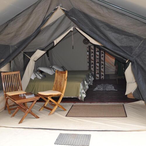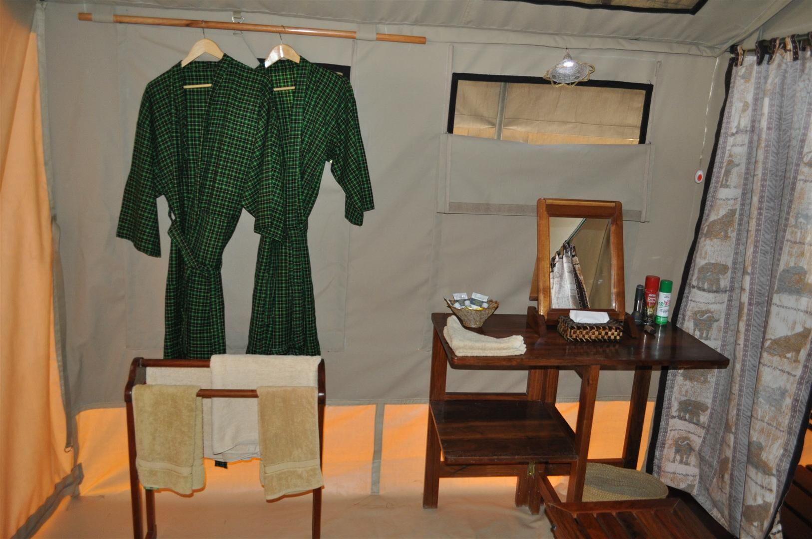 De luksuriøse telte er høje, så man kan både stå og gå inde i dem. Der er senge af træ, madrasser, dyner, tæpper, puder og sengeborde. Der er toilet-og badfaciliteter bagerst i teltet og afskærmet af kanvas teltdug. Udenfor teltet er der en veranda med to safaristole og bord, så man kan sidde udenfor sit telt og nyde naturen, lydene og slappe af midt i det afrikanske safarieventyr.