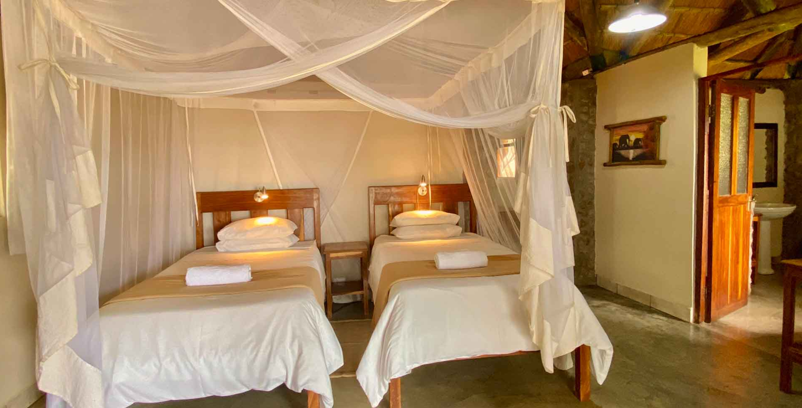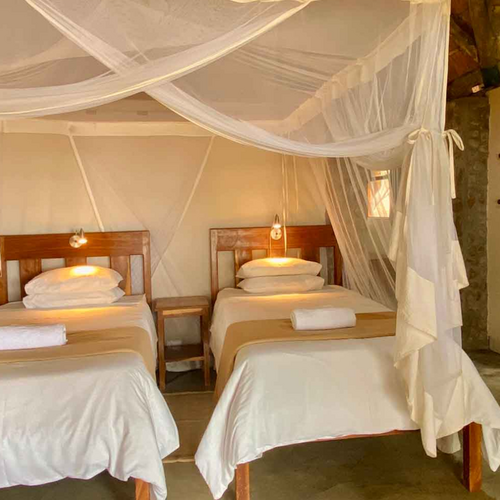 Lodgens værelser består af 7 store en-suite "luksus telte", 8 bungalows som alle vender mod floden og derudover 4 en-suite chalets som ikke vender mod floden. Derudover tilbyder lodgen også overnatning for camping entusiaster med deres 9 pladser.