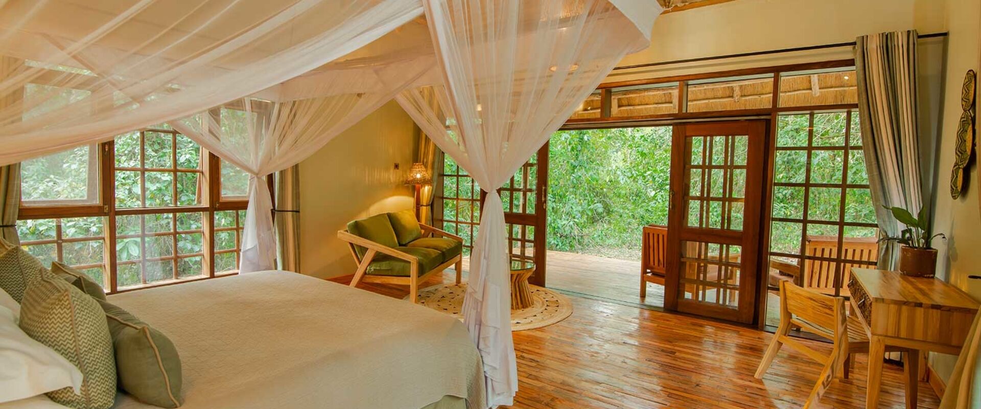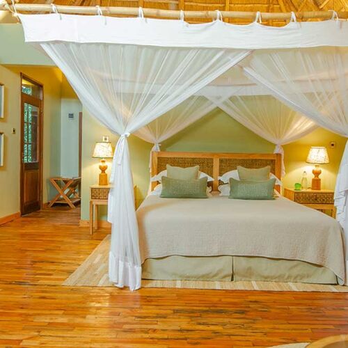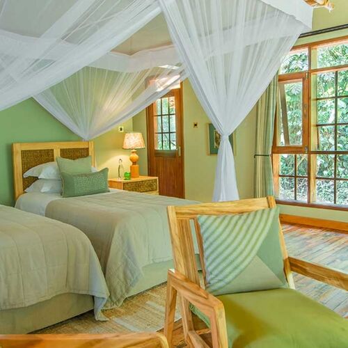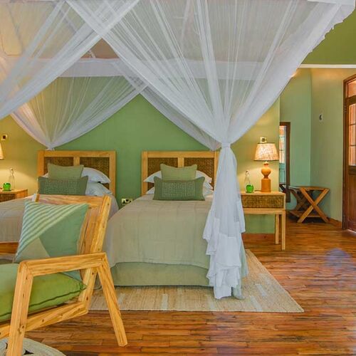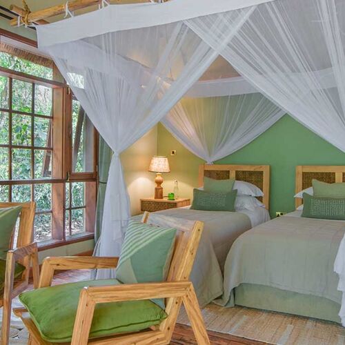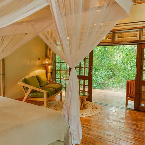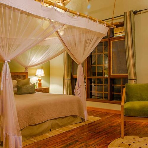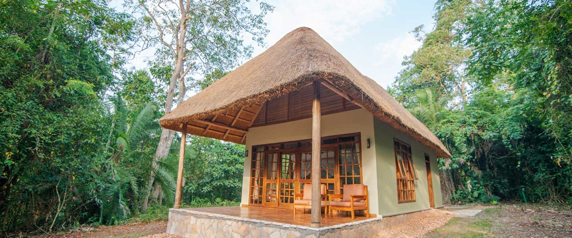 Primate Lodge Kibale är vackert belägen mitt i Kibale Forest National Park i Uganda, omgiven av frodig tropisk skog som är hem till 13 olika primatarter, inklusive schimpanser. Den avskilda platsen ger en autentisk djungelupplevelse, idealisk för dem som vill komma nära Ugandas djurliv och primater i deras naturliga habitat.