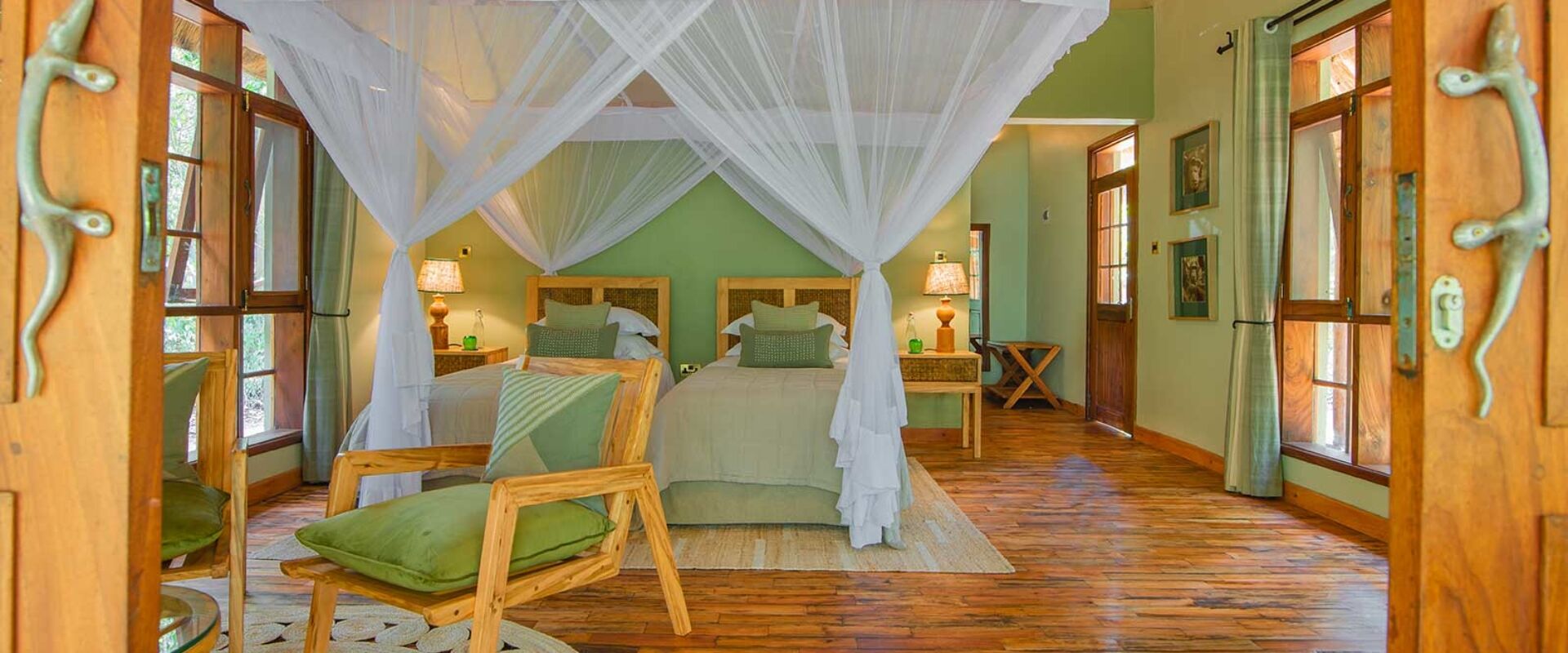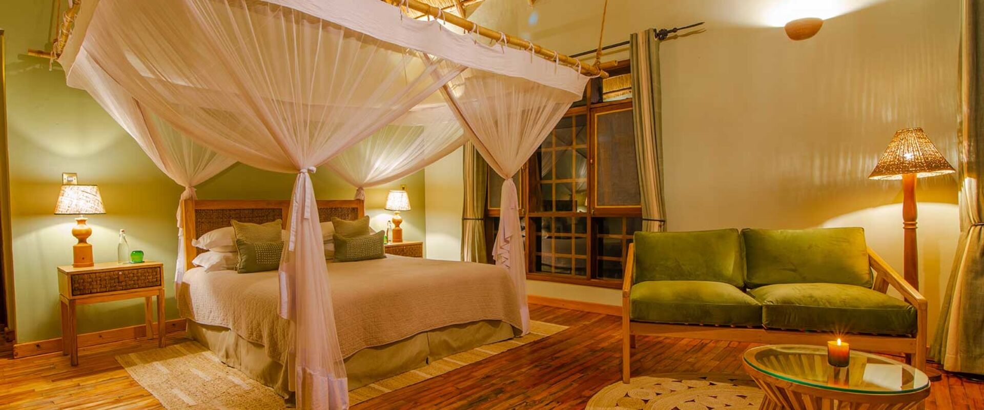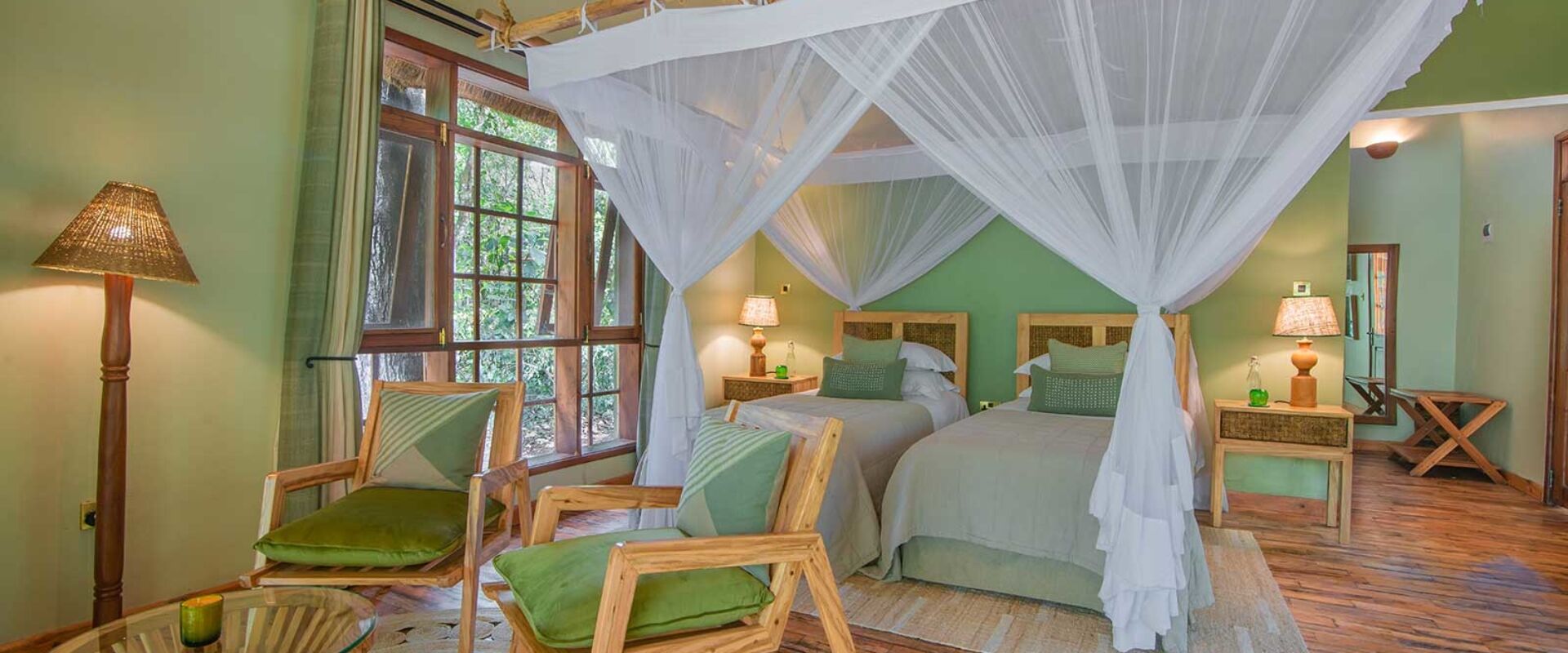 Primate Lodge Kibale är vackert belägen mitt i Kibale Forest National Park i Uganda, omgiven av frodig tropisk skog som är hem till 13 olika primatarter, inklusive schimpanser. Den avskilda platsen ger en autentisk djungelupplevelse, idealisk för dem som vill komma nära Ugandas djurliv och primater i deras naturliga habitat.