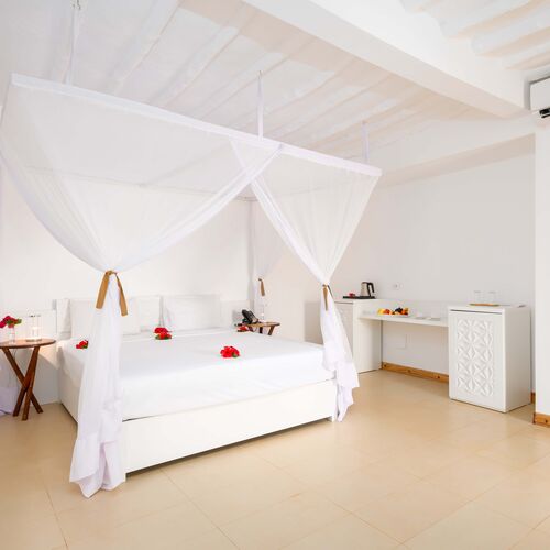 Der er i alt 20 Swahil værelser (nogle sammenhængende) på 27 m2, 39 garden værelser på 25 m2, 14 familieværelser på 45 m2, 22 superior værelser på 38 m2 og 10 delux værelser på 32 m2. Alle med ensuite badeværelser med walk-in bruser.