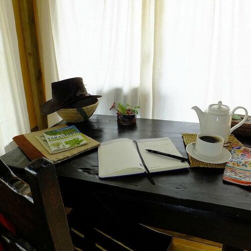 Morgenmaden serveres som buffet og frokost plus aftensmad serveres via a la carte. Maden på lodgen gør brug af lokale og friske ingredienser, herunder frugt, grøntsager og krydderier.