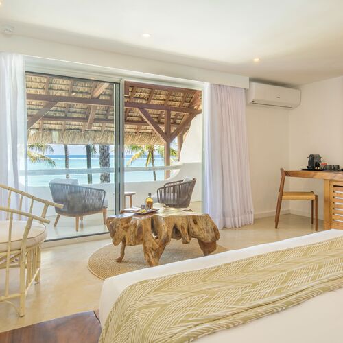 Hotellet erbjuder 20 Charm-rum, 21 Deluxe-rum, 11 Sviter, 2 Juniorsviter (även kallade Presidential Suites) och 5 Seniorsviter (även kallade Royal Suites). Från Charm-rummen har man utsikt mot trädgården. Alla andra rumstyper har havsutsikt och vi har baserat våra från-priser på vistelse i ett Deluxe-rum. Det finns både Deluxe Beachfront- och Deluxe Ocean-rum, som ligger endast några steg från stranden och den östra kustens fina sand. Dessa rum är rymliga och har en vacker design. Deluxe Beachfront-rummen ligger på bottenvåningen och erbjuder direkt tillgång till stranden, medan Deluxe Ocean-rummen ligger på första våningen med en härlig utsikt över havet och vågorna.