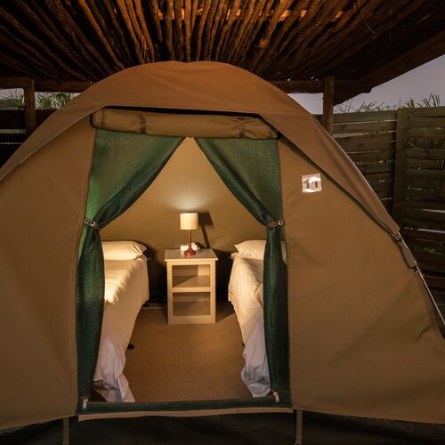 Campen har moderna tvättfaciliteter och erbjuder 42 privata rum som är inredda i en avslappnad och elegant stil. Campen har både deluxe- och standardstugor. Båda typer av stugor är stiliga och budgetvänliga med modern komfort och bekväma sängar. Stugorna är en-suite med dusch och varje rum har en privat uteplats där man kan koppla av. För dem som gillar den unika upplevelsen av att sova under bar himmel men ändå vill ha lite lyx finns det kuppeltält. Dessa tält är utrustade med två enkelsängar, ett litet mattunderlag, ett nattbord och en elektrisk kontakt. Tälten är placerade i skuggiga områden för att ge skydd mot solen. Området runt tälten har ett köksområde, gemensamma toaletter och duschar i modern design, flera eluttag för laddning och tvättmöjligheter.