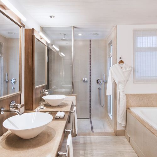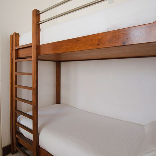 Alle værelser er 43m2 og kan imødekomme 2+1 personer med undtagelse af familieværelserne som er 59m2 og som kan imødekomme 2+3 personer.
