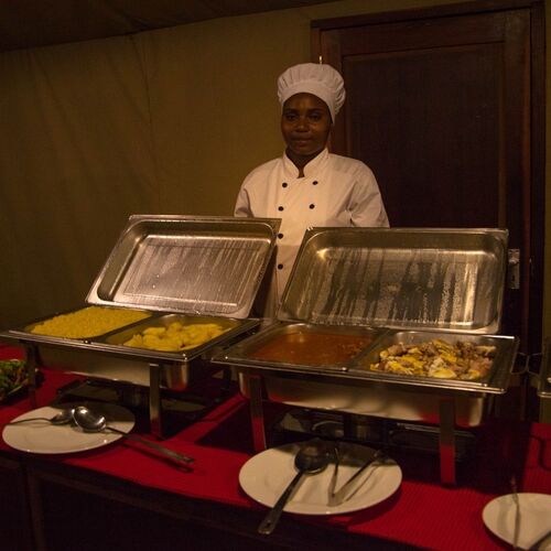 Fyra måltider serveras varje dag: frukost, lunch, eftermiddagskaffe och middag. Måltiderna kan anpassas efter eventuella kostrestriktioner om det behövs. Dessutom är det möjligt att få olika viner från Sydafrika.