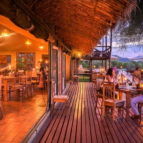 Aktiviteter inkluderar gamedrives i nationalparken, fågelskådning, observation av vilda djur från lodgens plattform eller ett dopp i poolen.