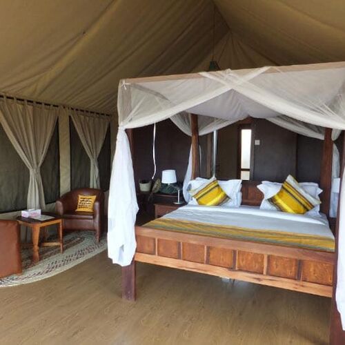 Lodgen består av 16 stycken klassiska permanenta tält som kan ordnas antingen som två enkelsängar eller en dubbelsäng. Dessutom finns det även ett familjetält med två queen size-sängar.