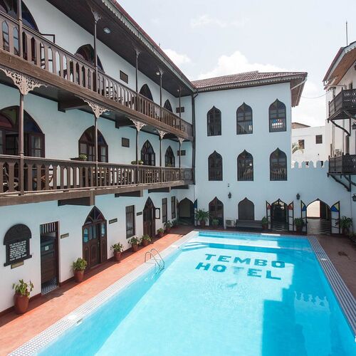 Stone Town er ikke større end man kan krydse byens labyrint på under en time. Tempo House hotellets beliggenhed ved havnefronten mellem Forodganis Gardens, hvor folk stimler sammen om aftenen for at spise, promenere og mødes, og Shangani-bydelen med dens restauranter og butikker, giver let adgang til byens mest livlige steder og seværdigheder. Stone Town hedder Mji Mkongwe på swahili/kiswahili og betyder "old town". Stone Town blev i 2000 optaget på UNESCO Verdensarvliste, som et fint eksempel på en swahilisk handelsby på den afrikanske østkyst.