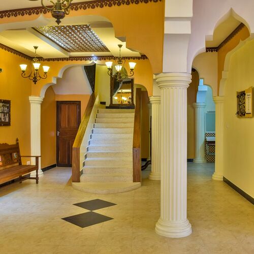 Tempo Palace hotellets beliggenhed ved havnefronten mellem Forodganis Gardens, hvor folk stimler sammen om aftenen for at spise, promenere og mødes, og Shangani-bydelen med dens restauranter og butikker, giver let adgang til byens mest livlige steder og seværdigheder. Stone Town hedder Mji Mkongwe på swahili/kiswahili og betyder "old town". Stone Town blev i 2000 optaget på UNESCO Verdensarvliste, som et fint eksempel på en swahilisk handelsby på den afrikanske østkyst.