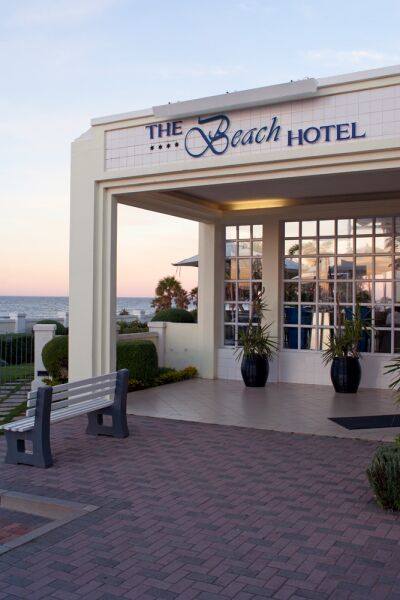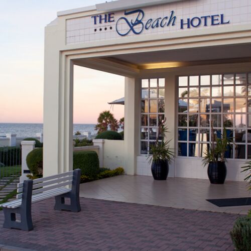 The Beach Hotel i Port Elizabeth kun 5 km fra lufthavnen. Hottelet har udsigt over Det Indiske Ocean. Alle værelser er med aircondition. De har tre restauranter, swimmingpool og solterrasse med havudsigt.