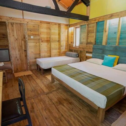 Værelser: Suiter og hytter er omgivet af frodige grønne områder og tropiske planter. Nogle værelser har balkon og udsigt til haven. The Orchard har i alt 4 værelser, som er indrettet i råt træ og i sin helt egen stil.
