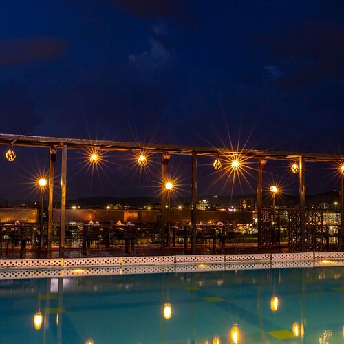 Hi-life har åbent til aftensmads tid og er placeret ved siden af poolen på tagterassen. Her bydes på retter fra det mexicanske, indiske og fusion food.