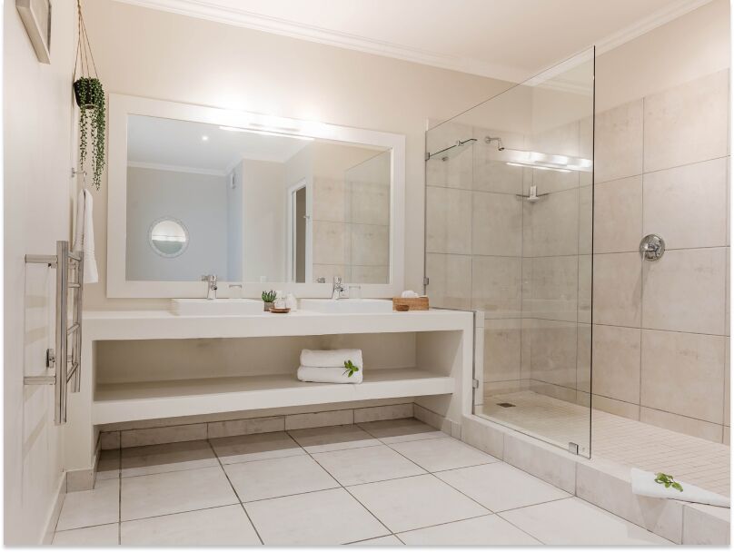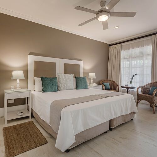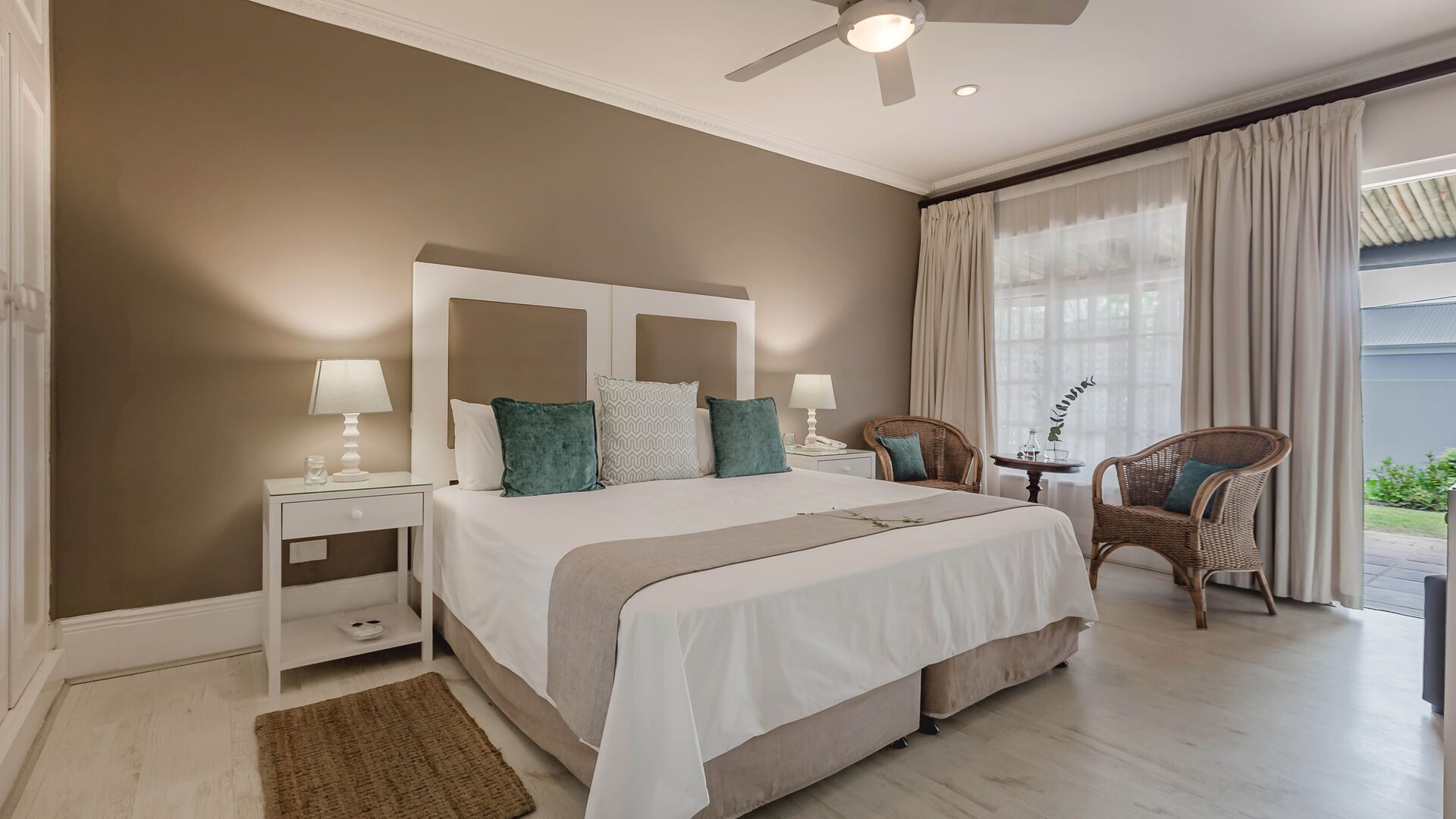 Bo i et af vores luksuriøse dobbelt-/tvillingeværelser i en af vores strandindkvarteringsvillaer: Cordovan Villa og Robberg House. Perfekt for par, der søger rummelige, komfortable værelser med nem adgang til parkering og en kort gåtur til stranden.