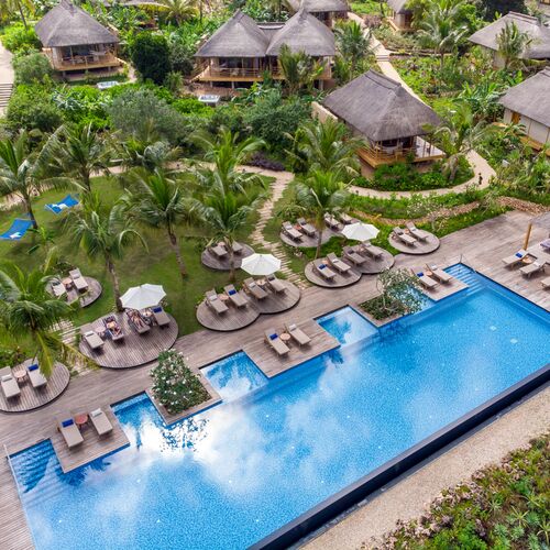 The Zuri Zanzibar Hotel & Resort er et super lækkert hotel bestående udelukkende af suiter, bungalows og villaer frem for værelser i en hovedbygning. Det ligger på den nordøstlige kyst med smukke omgivelser i form af både hav og have.