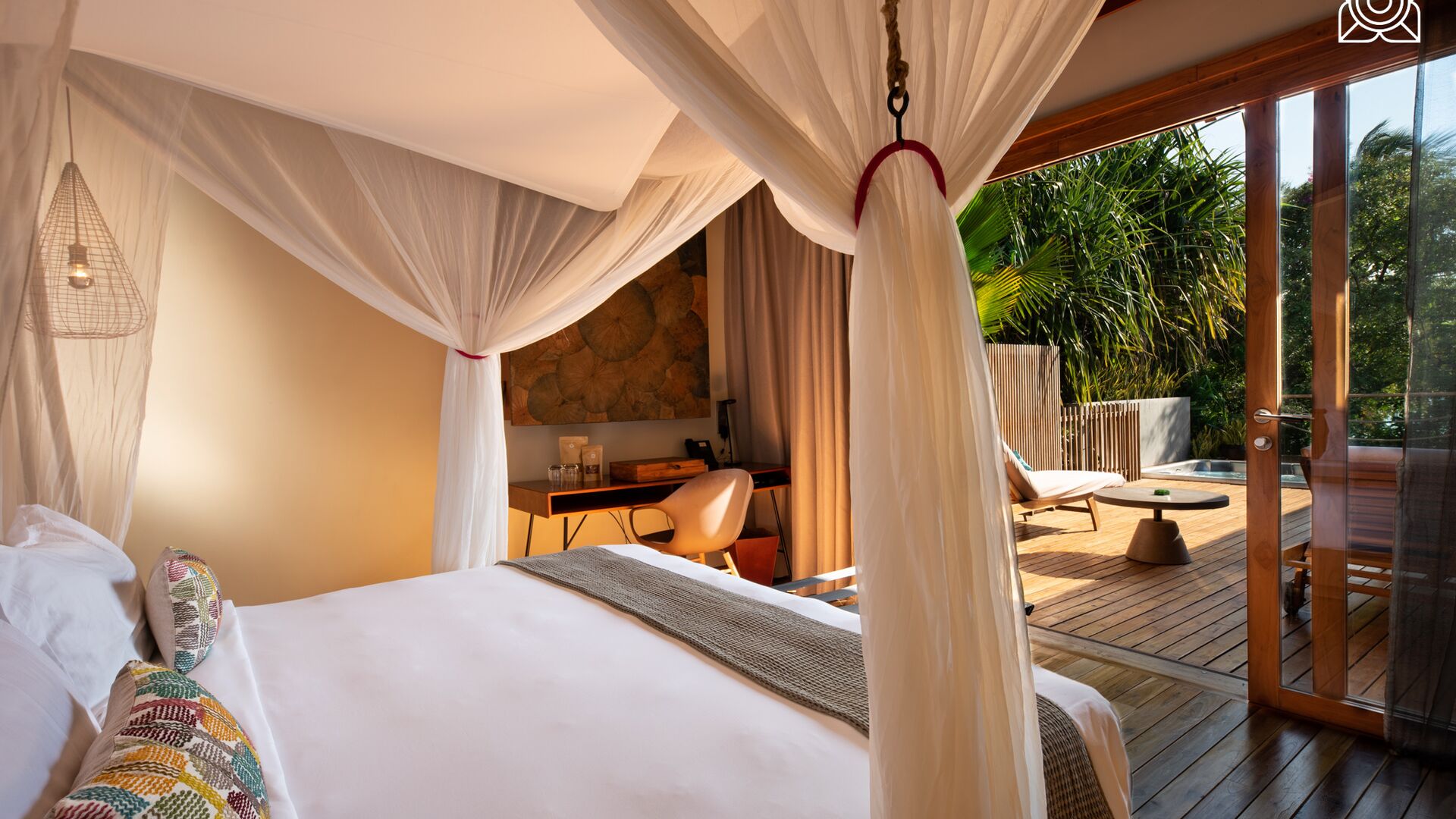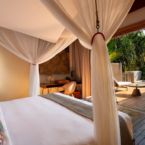 Værelserne er som sagt spredt ud i landskabet i form af suiter, bungalows og villaer. Villaerne med 2 værelser kan både fås med direkte nedgang til stranden og havet eller med udsigt til den spektakulære have. Uanset hvad så er der badeværelse til hvert værelse, stor terrasse med jacuzzi og en rundtur i deres krydderihave eller ”wellbeing” session pr. dag. Disse wellbeing sessions inkludere blandt andet en facial i jacuzzien, en yoga time eller træning i enten de indvendige eller udvendige fitnessfaciliteter.