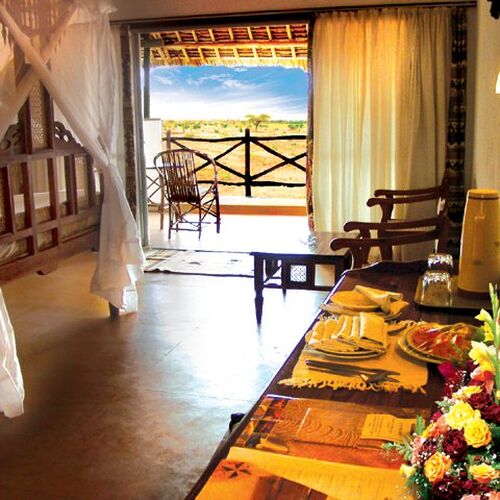 Voi Wildlife Lodge ligger i hjertet af Tsavo East Nationalpark i Kenya, kun 5 km fra hovedvejen, der forbinder Nairobi og Mombasa. Denne lodge tilbyder en fantastisk mulighed for at opleve Afrikas vilde natur tæt på. Åbnet i 2003, strækker lodgen sig over 50 hektar og byder på en række komfortable værelser med udsigt til den vidtstrakte savanne.