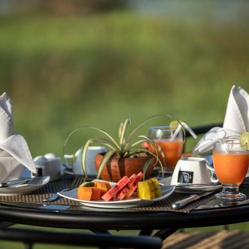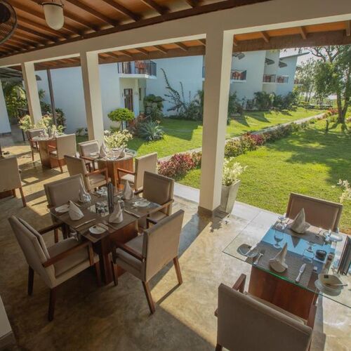 Hotellets restaurant har smuk beliggenhed med udsigt til hotellets have. Restauranten har overdækket terrasse, og tilbyder lokale retter såvel som vestlig orienteret mad.