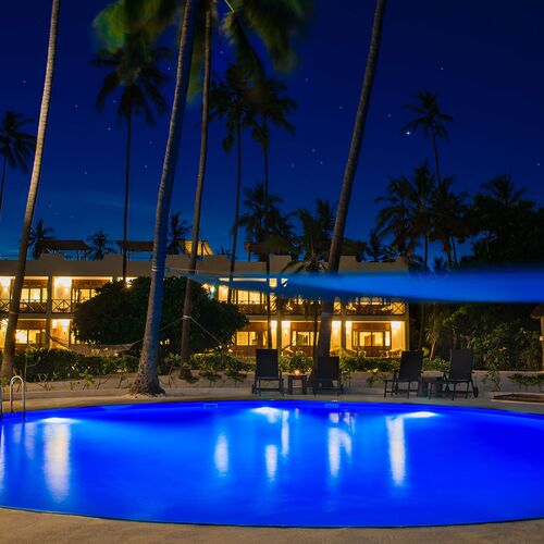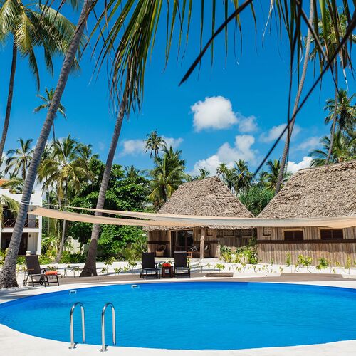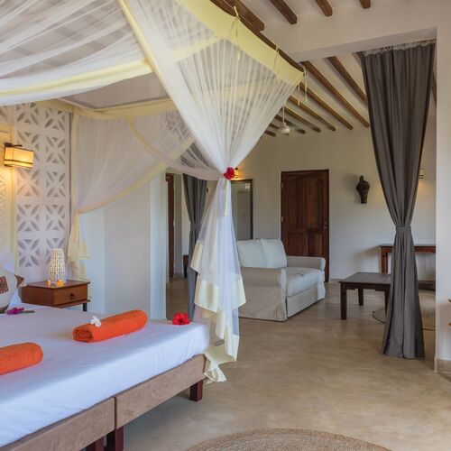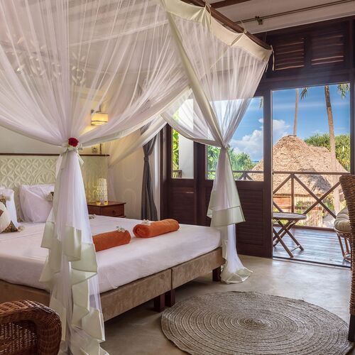Alla rum på detta underbara hotell har en egen terrass med utsikt över vackra palmer och (delvis) havsutsikt mot det turkosblå Indiska Oceanen. Det finns olika typer av rum, alla rymliga på 35 kvadratmeter med sköna sängar. Badrummen är utrustade med moderna faciliteter med en afrikansk touch. Rumstyperna inkluderar rum med trädgårdsutsikt med möjlighet till dubbelsäng eller två enkelsängar och rum med havsutsikt, också med möjlighet till dubbelsäng eller två enkelsängar. På vissa av rummen med trädgårdsutsikt finns möjlighet att öppna upp och ansluta till ett annat rum så man får ett familjerum för barnfamiljer.