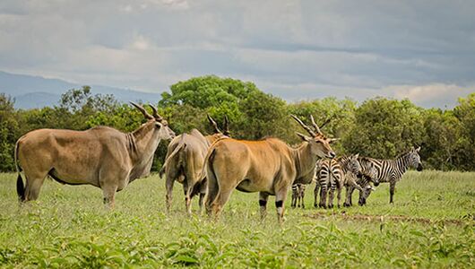 Safari två gånger om dagen, där det finns möjlighet att uppleva alla de djur man förknippar med Afrika. "The Big Five": elefant, lejon, leopard, noshörning och buffel finns här, men också geparder, hyenor, vilda hundar och stora mängder gaseller, antiloper, giraffer, zebror och gnuer.