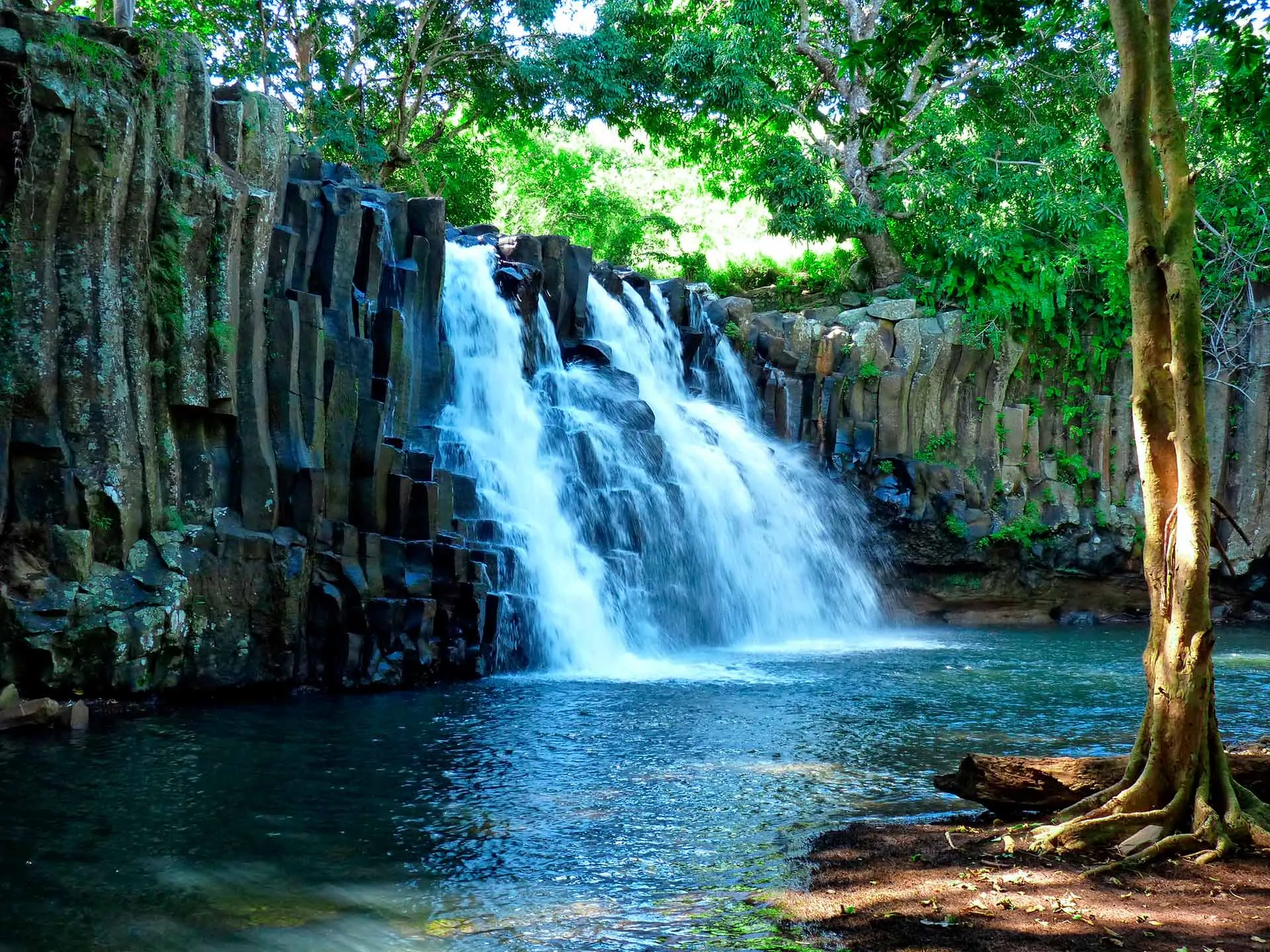 Det centrala Mauritius domineras av dramatiska vulkaniska berg med vackra vattenfall och frodiga skogar som omges av produktiva jordbruksområden där sockerrör är den primära grödan och exportvaran.