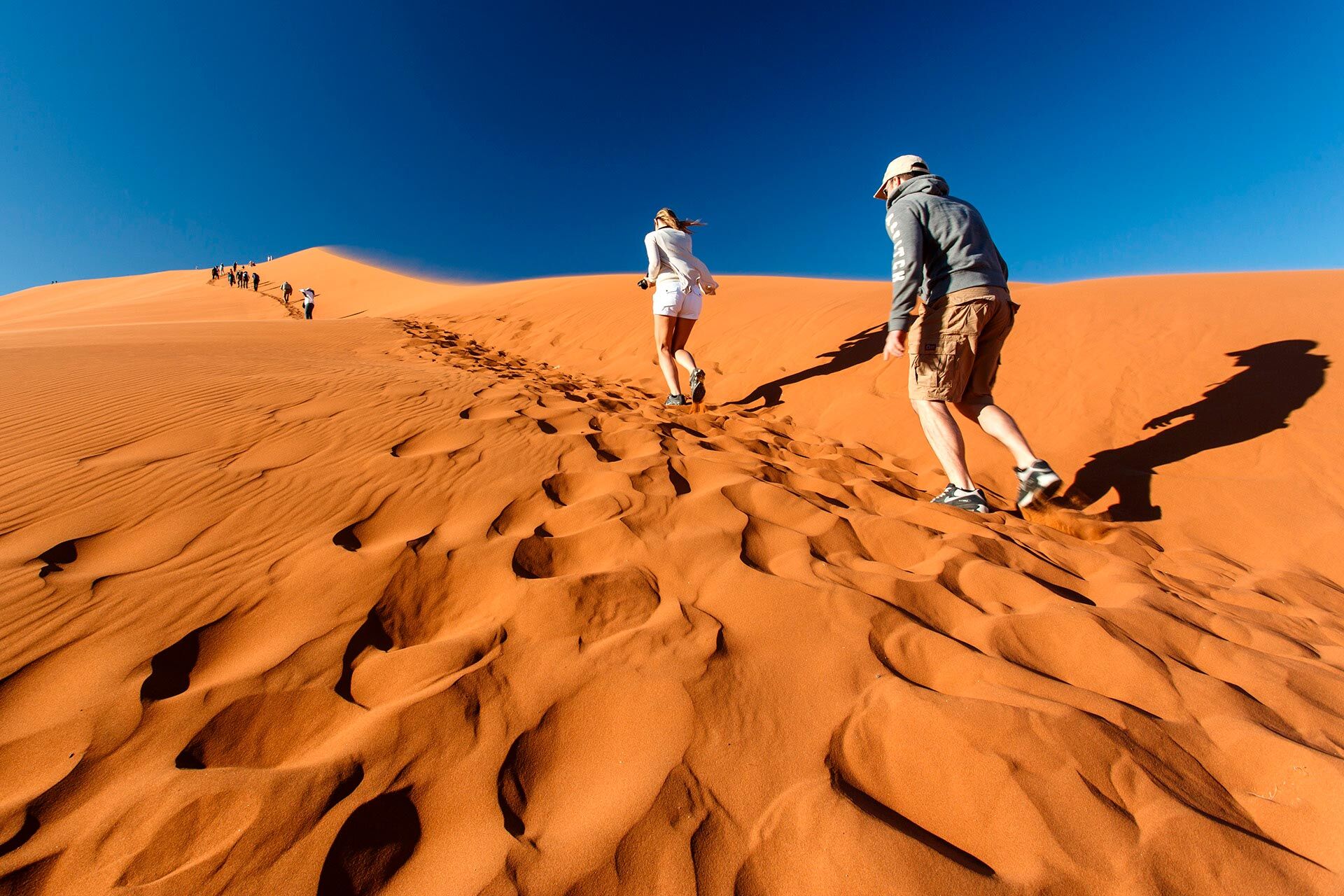 Det sydvästliga Namibia domineras helt av Namiböknen, där större delen är skyddad av den mäktiga Namib-Naukluft Park. Parken täcker 6% av landet och med nästan 50 000 km2 är den Afrikas största nationalpark och en av världens största. Parken är mest känd för området nära Sesriem i den östra delen cirka 300 km söder om huvudstaden Windhoek, särskilt Sossusvlei och Deadvlei som är de mest spektakulära av ett antal oftast uttorkade vattenområden. De ligger bland några av världens högsta och vackert orange-röda sanddyner på över 300 meter. Åtkomsten sker med parkens specialtillverkade fordon, varpå man släpps fri och till fots kan utmana de stora sandbergen för att hitta den perfekta utsikten och ta de ultimata ökenbilderna