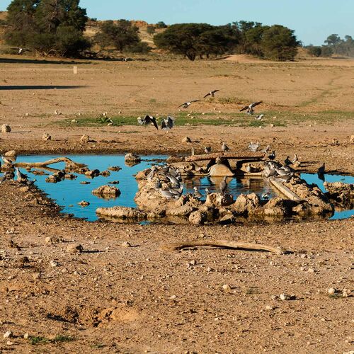Kgalagadi Transfrontier Park ligger fjernt og øde i Sydafrikas nordvestlige del mere end 1.000 km fra både Johannesburg og Cape Town. Parken er gigantisk og rækker på tværs af grænsen til Botswana, hvor omkring tre fjerdele af de i alt 38.000 km2 ligger.
