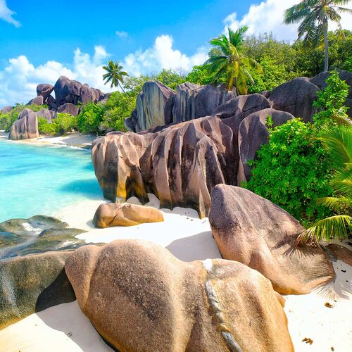 Den lille ø La Digue på kun 10 km2 er nem at udforske til fods eller på cykel.