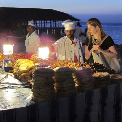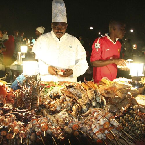 Ett besök på den stora matmarknaden i Forodhani Gardens är en genuin gastronomisk upplevelse som absolut inte får missas vid en resa till Zanzibar. Matmarknaden är ett fantastiskt sätt att uppleva Zanzibars kultur, dofter och vänliga lokalbefolkning på.