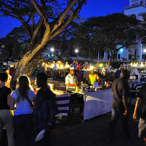 En av de mest fantastiska upplevelserna på Zanzibar är att komma nära de lokala människorna som skapar en otroligt mysig och autentisk atmosfär där man verkligen känner sig välkommen. Denna stämning kan upplevas mitt i Stone Towns centrum, där Forodhani Gardens är belägna precis vid Indiska oceanen. Vid skymningen förvandlas Forodhani Gardens till en enorm matmarknad där man kan smaka på lokala street food-rätter till mycket rimliga priser. Matmarknaden, som utspelar sig utomhus, är mycket välbesökt av lokalbefolkningen men är också en stor dragkraft för turister på Zanzibar.