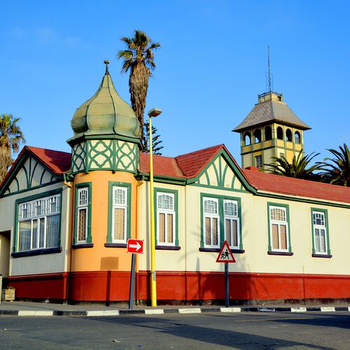 De två städerna är de mest lättillgängliga kuststäderna längs Namibias Atlantkust och ligger knappt 350 km väster om huvudstaden Windhoek längs goda asfaltvägar - lite mindre längs grusvägar genom den norra delen av Namib-Naukluft Park. På en safari besöks dessa städer dock oftast som länkar mellan Namiböknenens imponerande sanddynslandskap runt Sossusvlei mot söder och nordvästra Namibias Skeleton Coast Park samt den vackra och mer djurrika sten- och grusöknen runt Twyfelfontein och Palmwag.
