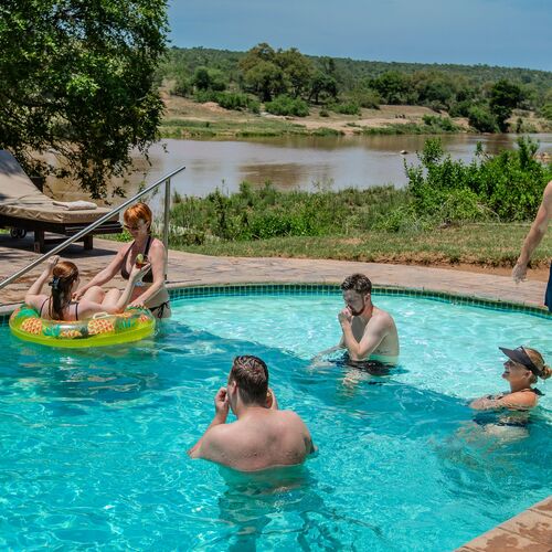 Njut av en avkopplande dag på Balule River Lodge, där du till exempel kan ligga och slappna av vid poolen eller sitta på terrassen och spana på de djur som vistas runt lodgen.