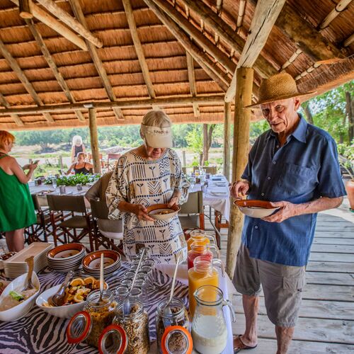 Ni kör i öppna safaribilar. I jakten på djuren visar vår ranger vägen och han vet exakt vad ni ska observera. Han känner till de vattenhål där djuren oftast kommer för att dricka, samt de slätter där de olika djurarterna typiskt uppehåller sig. Under resan gör ni stopp vid en av parkens rest camps där brunch tillagad av våra rangers serveras.
