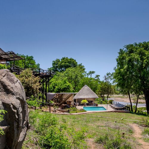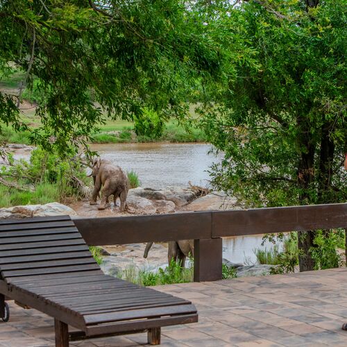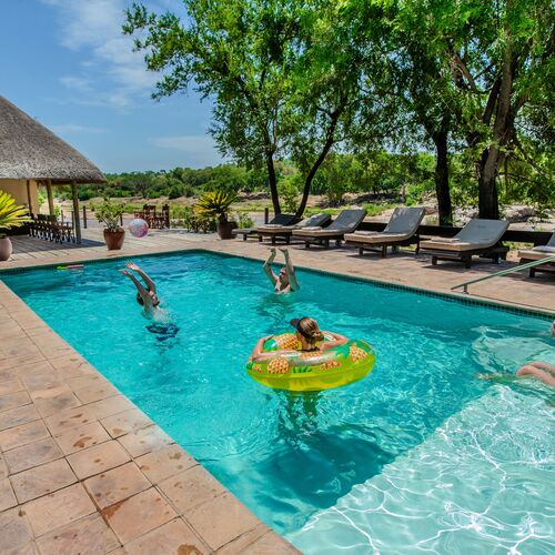 Njut av en avkopplande dag på Balule River Lodge, där du till exempel kan ligga och slappna av vid poolen eller sitta på terrassen och spana efter djur som vistas runt lodgen.