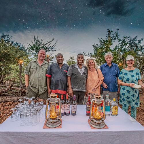 Det är en fantastisk stämning som sprider sig när köttet doftar från grillen, rödvinet hälls i glasen och servitörerna dukar bordet med levande ljus och vit duk, medan cikadorna sjunger och lejonen brölar i fjärran.