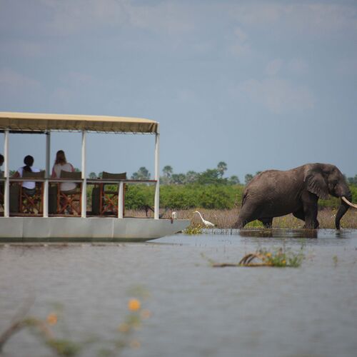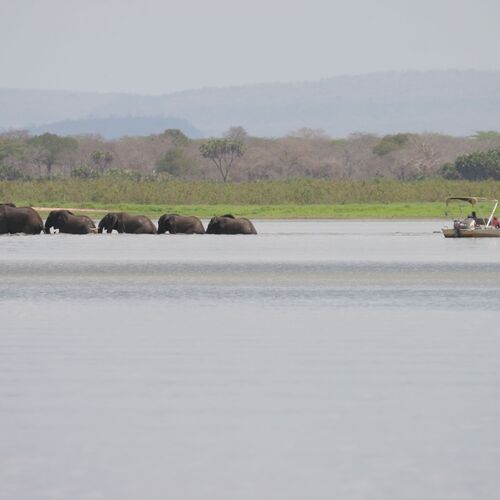 Efter en tidig frukost lämnar man campen för en härlig båttur uppför den mäktiga Rufiji-floden. Under resan kommer man att kunna betrakta flodhästar och krokodiler samt andra vilda djur som kommer ner till floden för att dricka. Efter en god lunch finns det möjlighet till en liten siesta eller ett dopp i poolen medan dagens hetta sakta avtar.