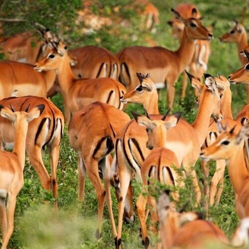 En stor del av Afrikas däggdjur – från de största till de minsta och mest sällsynta – har perfekta livsvillkor här. Dessutom finns det 440 olika fågelarter och mer än 2 000 olika växtarter.