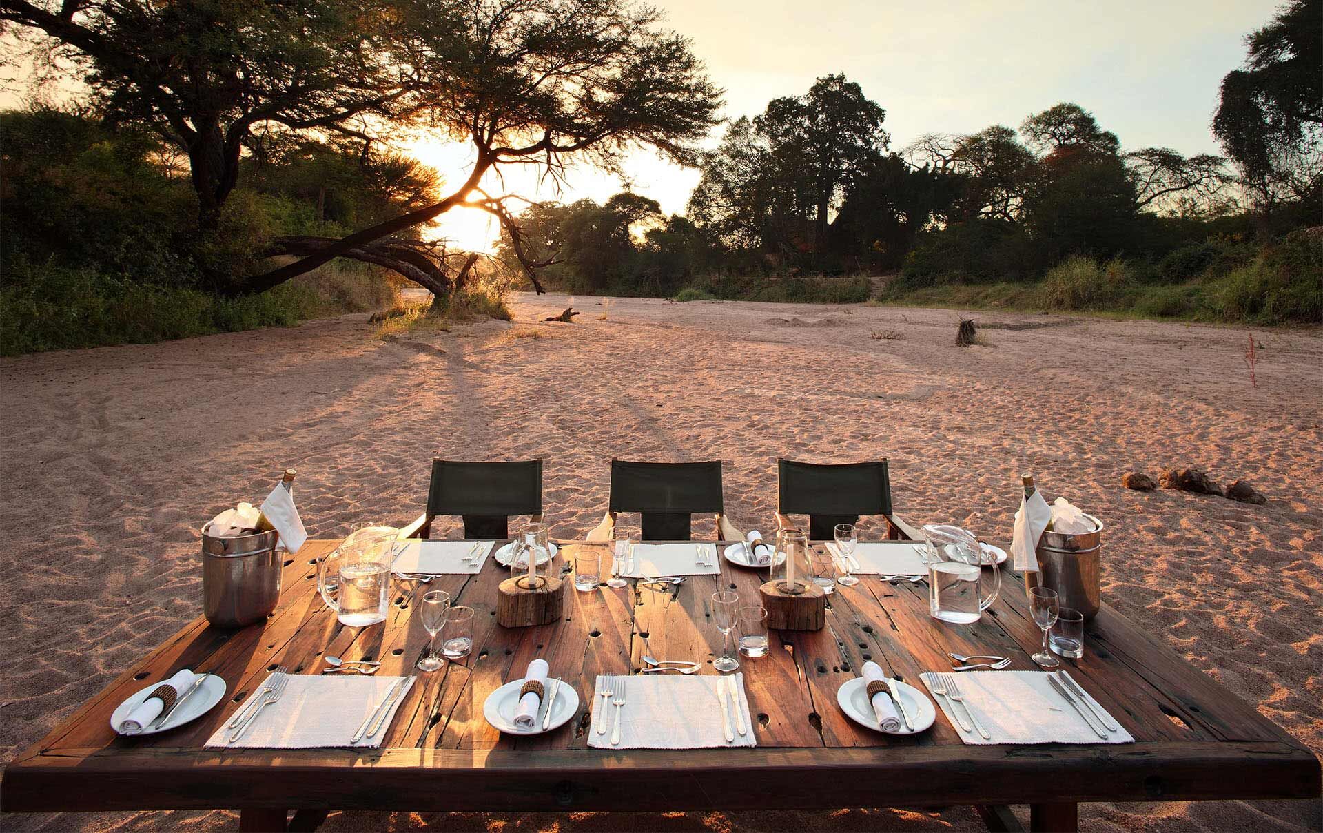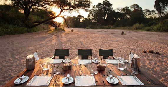 Vi följer Ruaha-floden och stannar för att njuta av solnedgången med en sundowner-drink innan vi återvänder till campen för middag och övernattning.